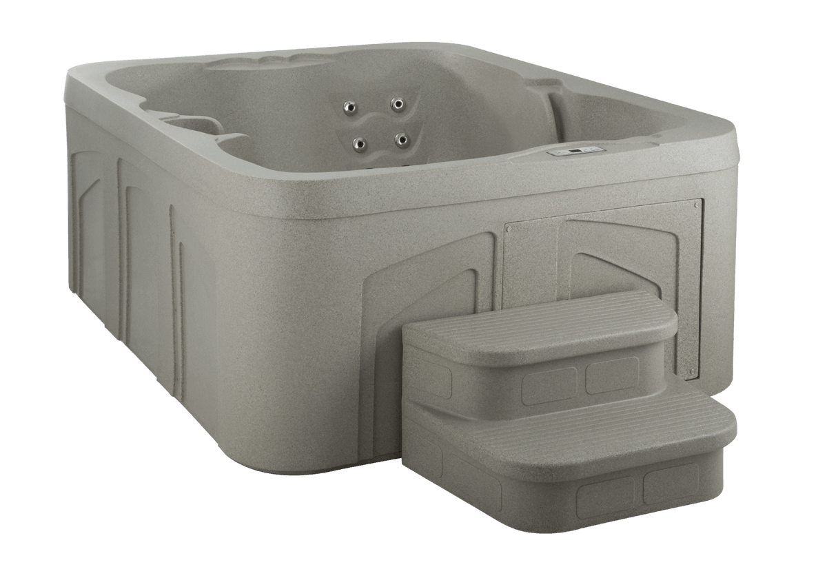 Deep and spacious, the Azure spa provides the perfect antidote to aches and pains. Massage your tired feet on perfectly placed foot-jets or lean back and enjoy the comfortable lounge seat. This spa also features a serene waterfall, an LED underwater light, and Plug-N-Play technology. It weighs less than 350 lbs. without water, so go ahead, take it with you wherever you go!